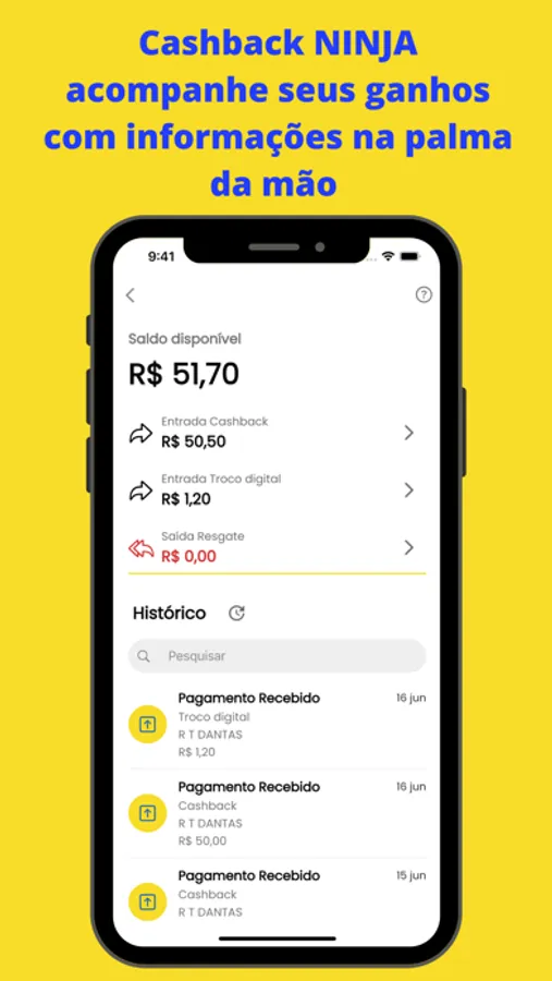 Esse aplicativo foi desenvolvido para controle de Cashback NINJA, que voce receberá de retorno nas compras em lojas credenciadas