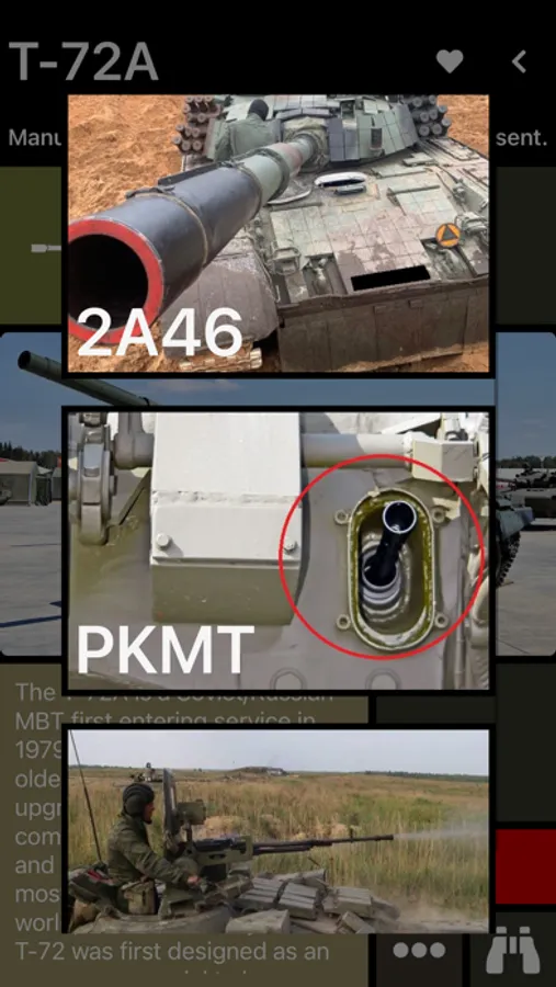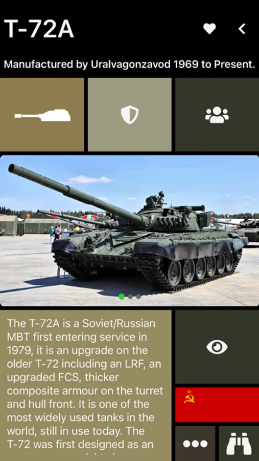 + Detailed AFV "cards" displaying vehicle images, descriptions, weapon systems, types of protection, recognising features and countries in service.