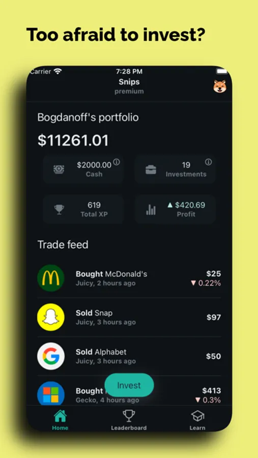 Snips is an investing copilot powered by AI, stock market simulator and an investing game that helps you learn how to invest in stocks.