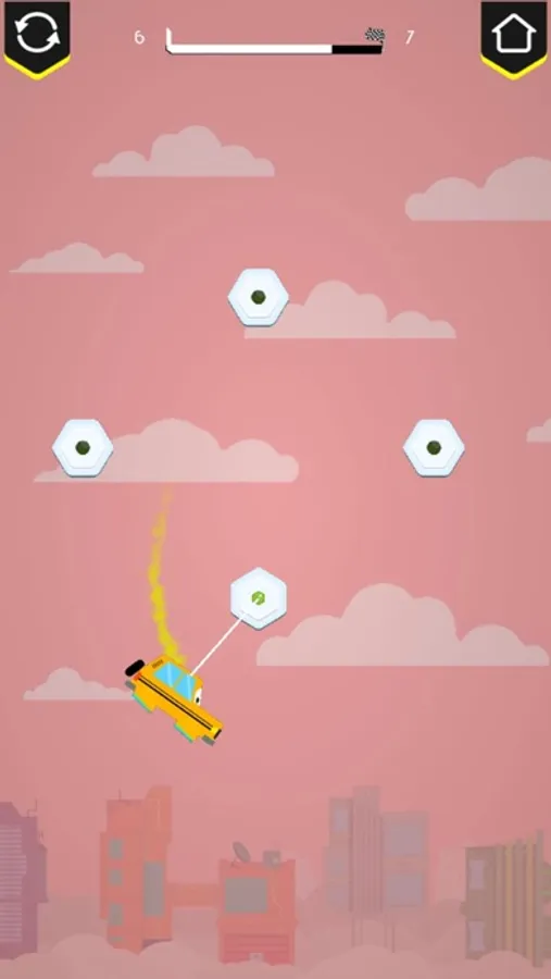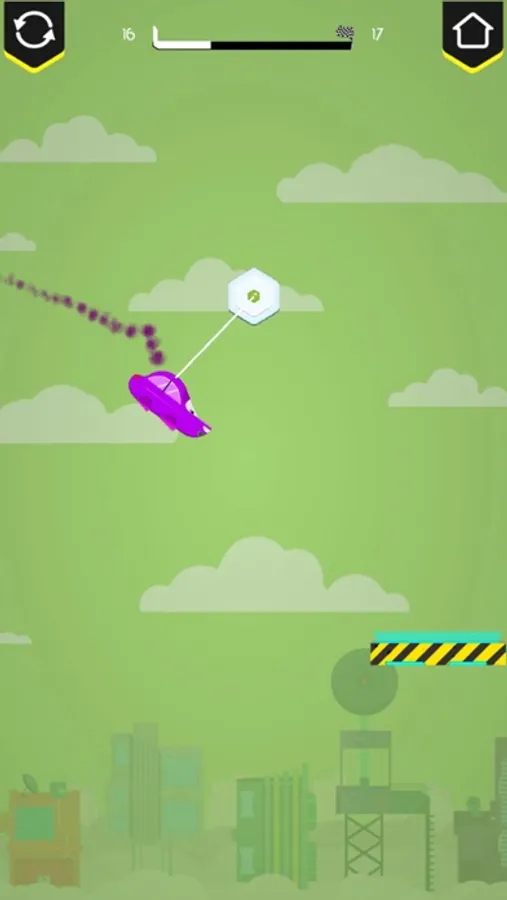 - Tap the screen to hook your car to the hub and release to swing.