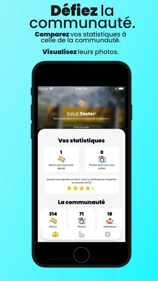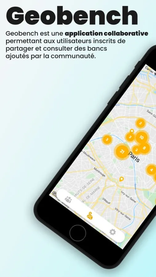 Geobench est une application collaborative permettant aux utilisateurs inscrits de partager et consulter des bancs ajoutés par la communauté.