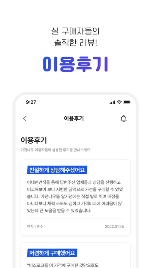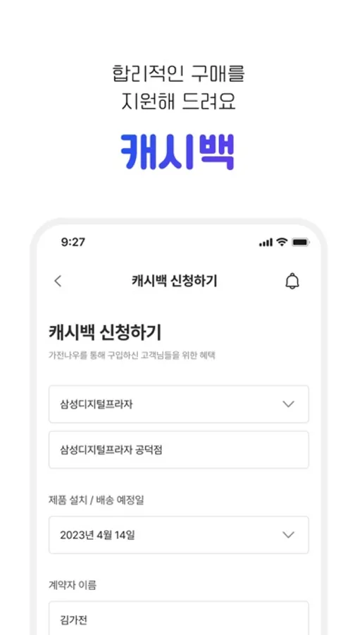 가전견적 비교부터 상담 및 구매까지, 모두 가능한 앱이에요.