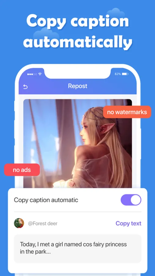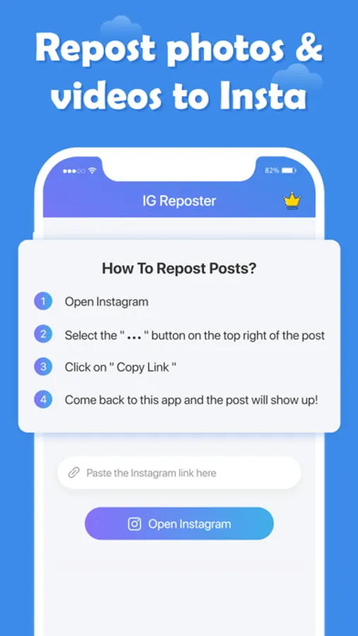 IG Reposter App makes it easy to repost photos & videos to Instagram, share favorite posts with your friends. With IG Reposter, you can repost the photos and videos to your story or feed without watermarks and ads!