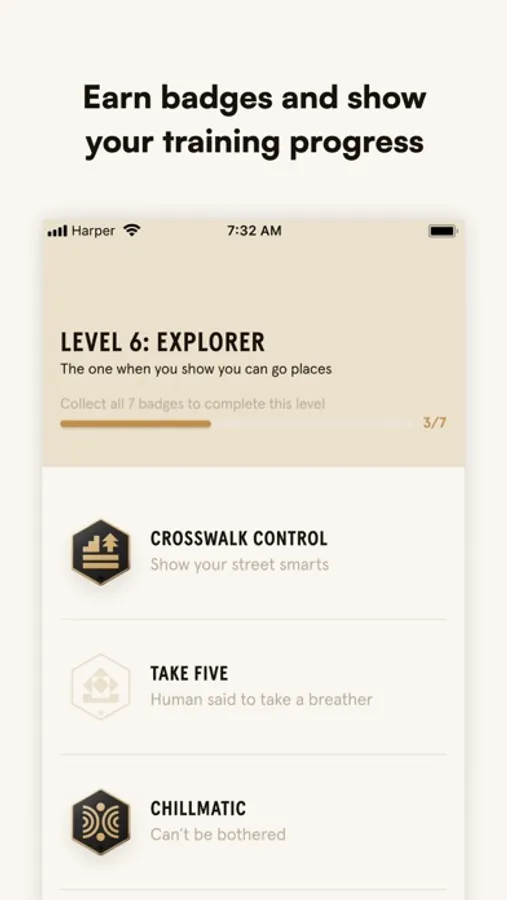 → Show off your training progress. Your dog can earn merit badges for important skills and level up in the game by completing challenges on video that get verified by real humans.