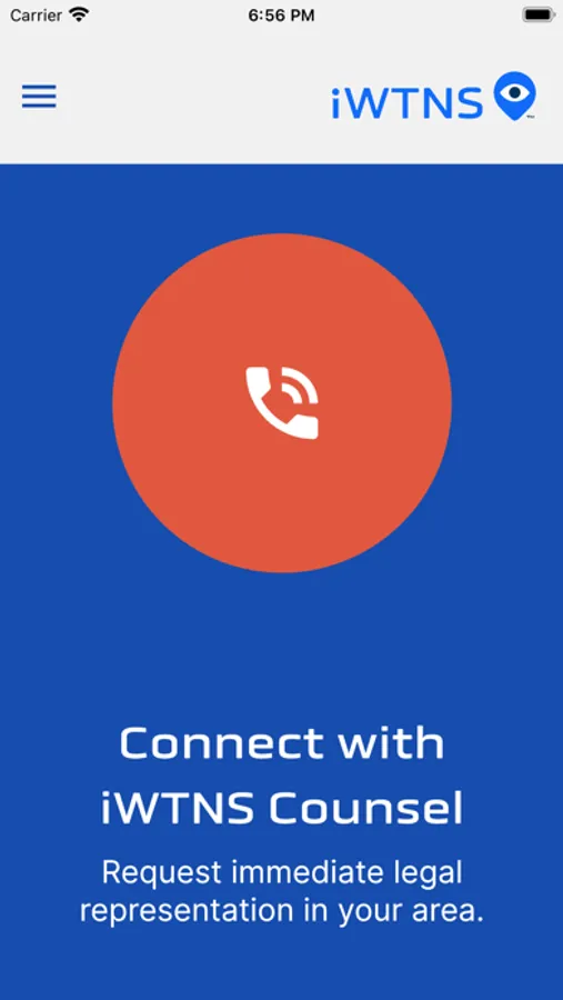 iWTNS uses a proprietary matching algorithm to connect motor vehicle drivers with live legal representatives via video at the push of a button or via voice activation. Once connected the legal representatives acting on behalf of iWTNS can communicate directly with the law enforcement officer to help facilitate incident-free and informed interactions.