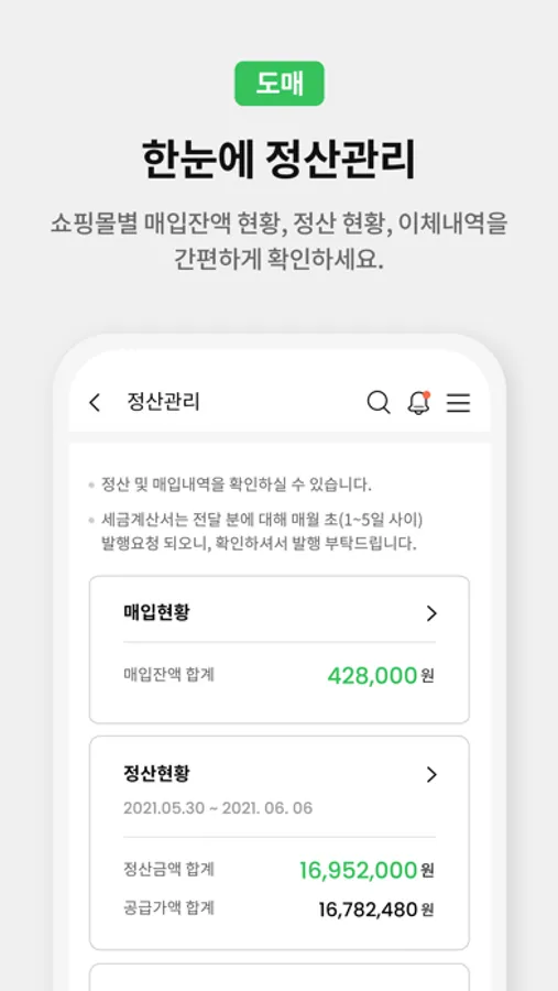 쇼핑몰별 매입잔액 현황, 정산 현황, 이체내역을
