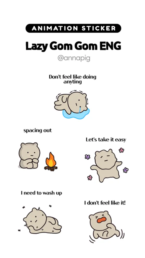 Here's newly launched Lazy Gom Gom for English Sticker!