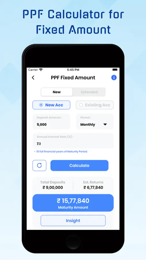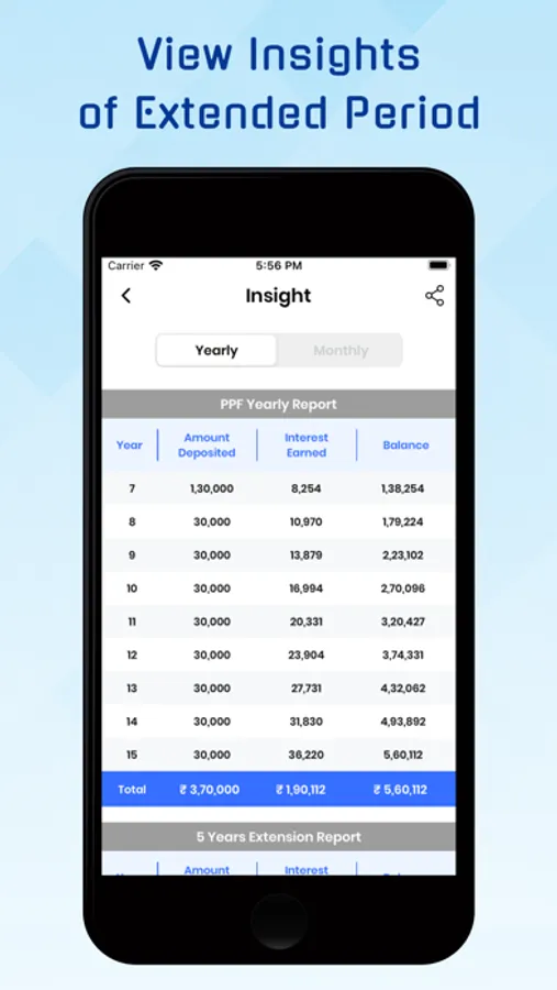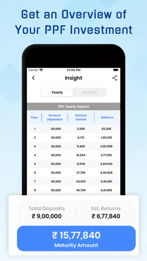 Our app has made PPF account interest calculation easy. But, we have gone further. You can view insight into your PPF investment within the PPF calculator in form of a PPF chart for 15 years