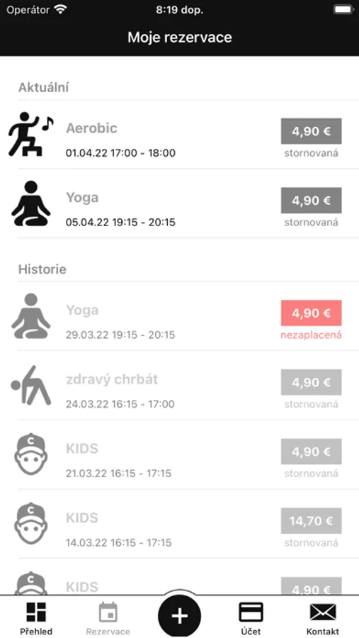 Vytvárať rezervácie na svoje obľúbené skupinové cvičenia