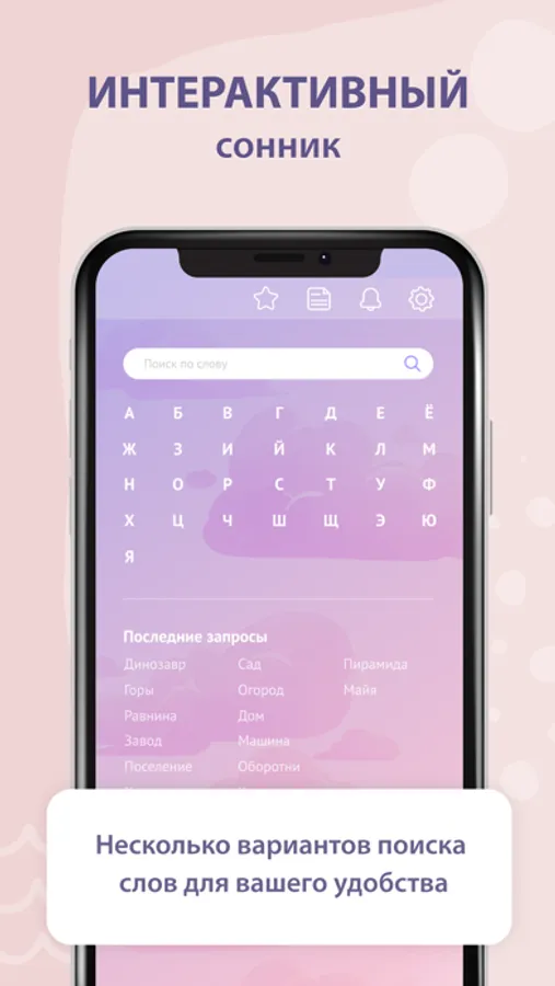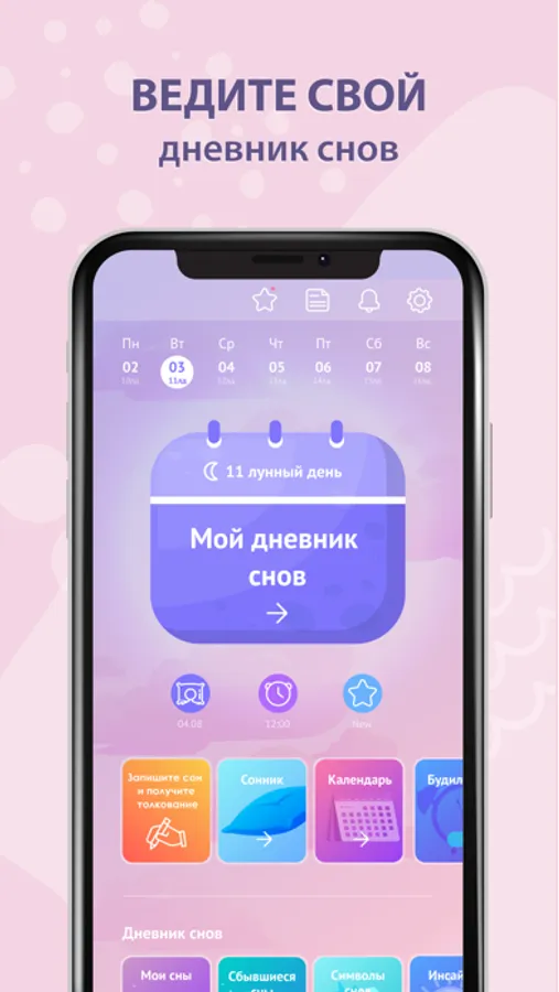 Приложение Diary Dreams поможет интерактивно найти нужную информацию по всем базам символов и максимально раскрыть суть сновидения. В приложении используется эффективный метод расшифровки снов, определение времени реализации сна.