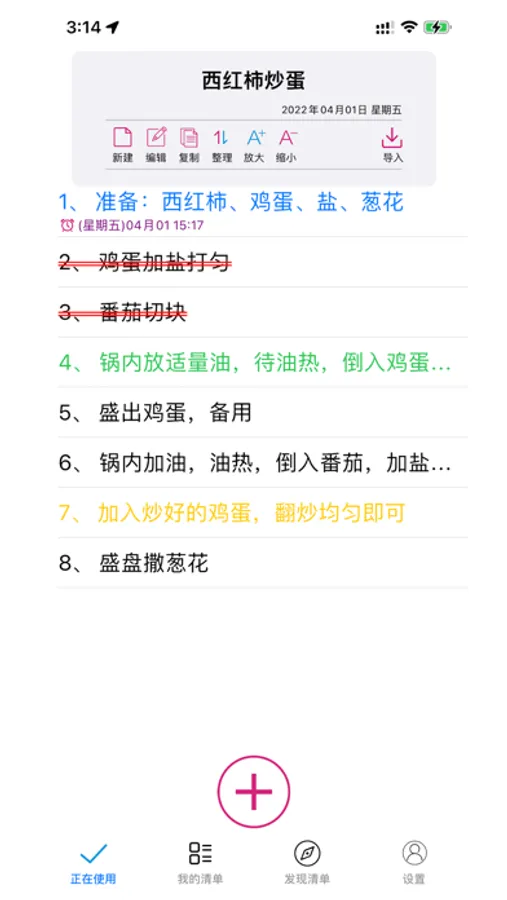 新增:一条一条新增清单内容,同时可以设置提醒时间