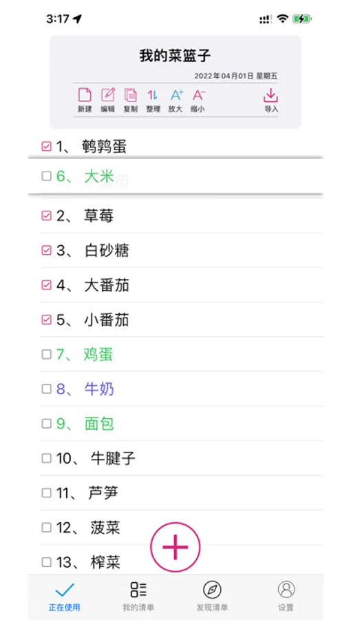 导入:可以导入其他清单内容