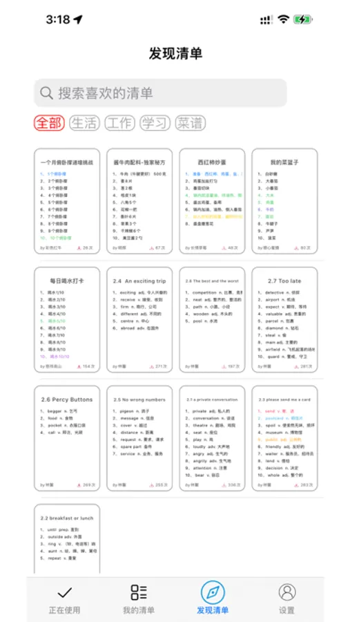 各种清单随手下载,还可以上传你喜欢的清单