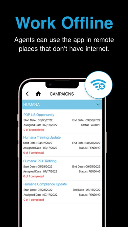 Our mobile app allows agents to receive member and lead campaigns from carriers directly to your phone and ready for one-touch dial. Track call history, outcomes and success rates.