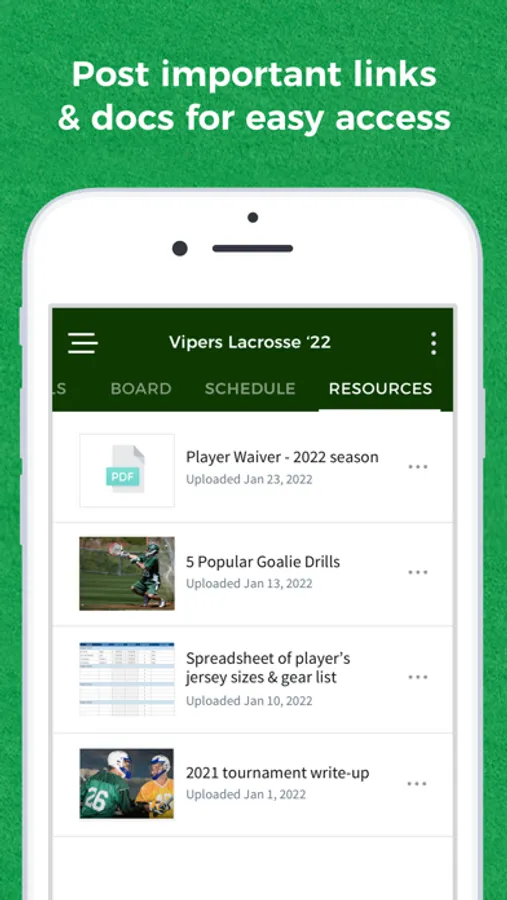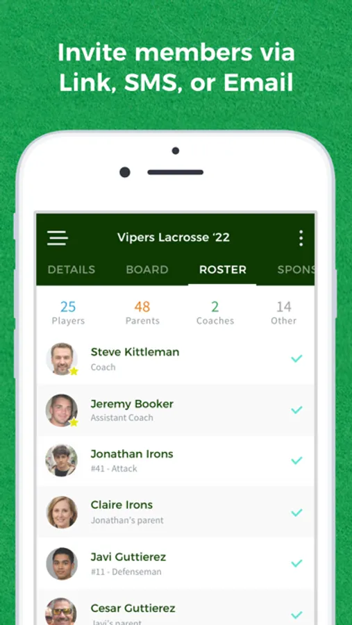 Parents and players can choose to share their contact info in their profile, making it easy for everyone to connect offline, schedule carpool pickups, or in case of emergencies.