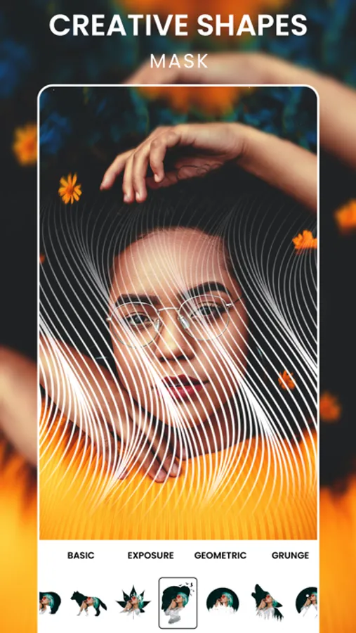 You can now add shapes to your photos. We have added a collection of frames like basic, exposure, geometric, grunge etc. Just add a shape in one click and make it more attractive by adding backgrounds to these shapes.