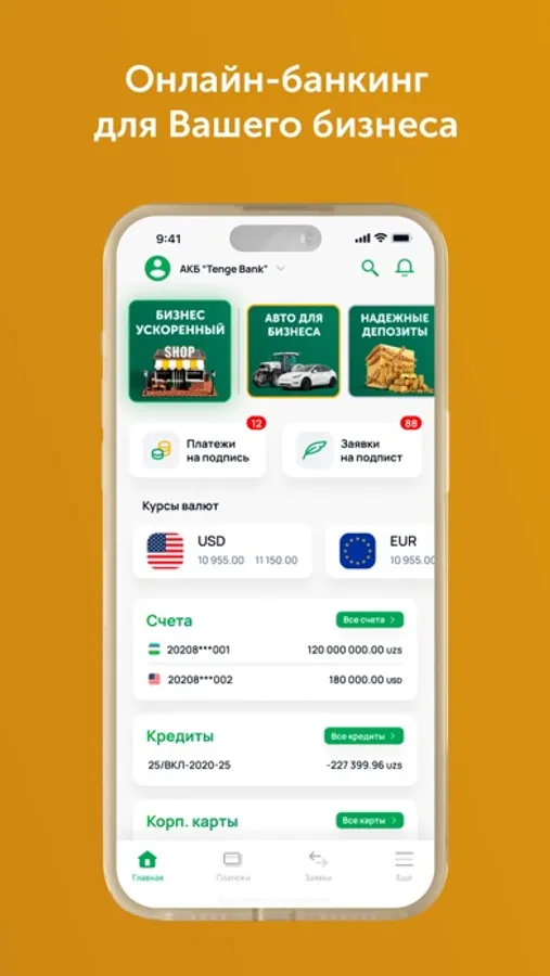 Незаменимый мобильный помощник для корпоративных клиентов и индивидуальных предпринимателей АКБ «Tenge Bank», с доступом к банковским услугам из любой точки Земли.