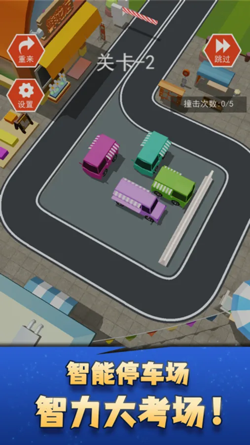 【操作简单】您可以通过垂直或水平移动车辆来把车子开出停车场。当所有的车都开出了停车场时,你就赢了。