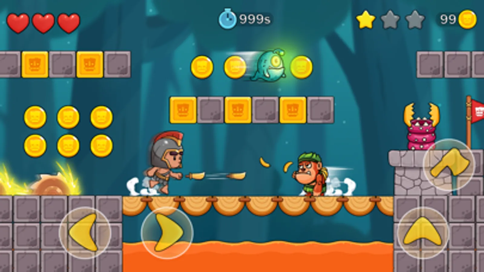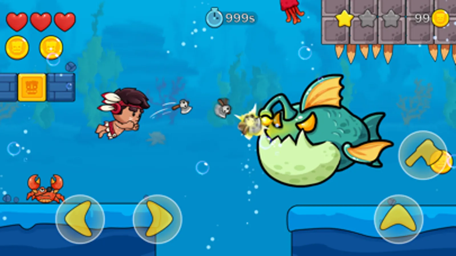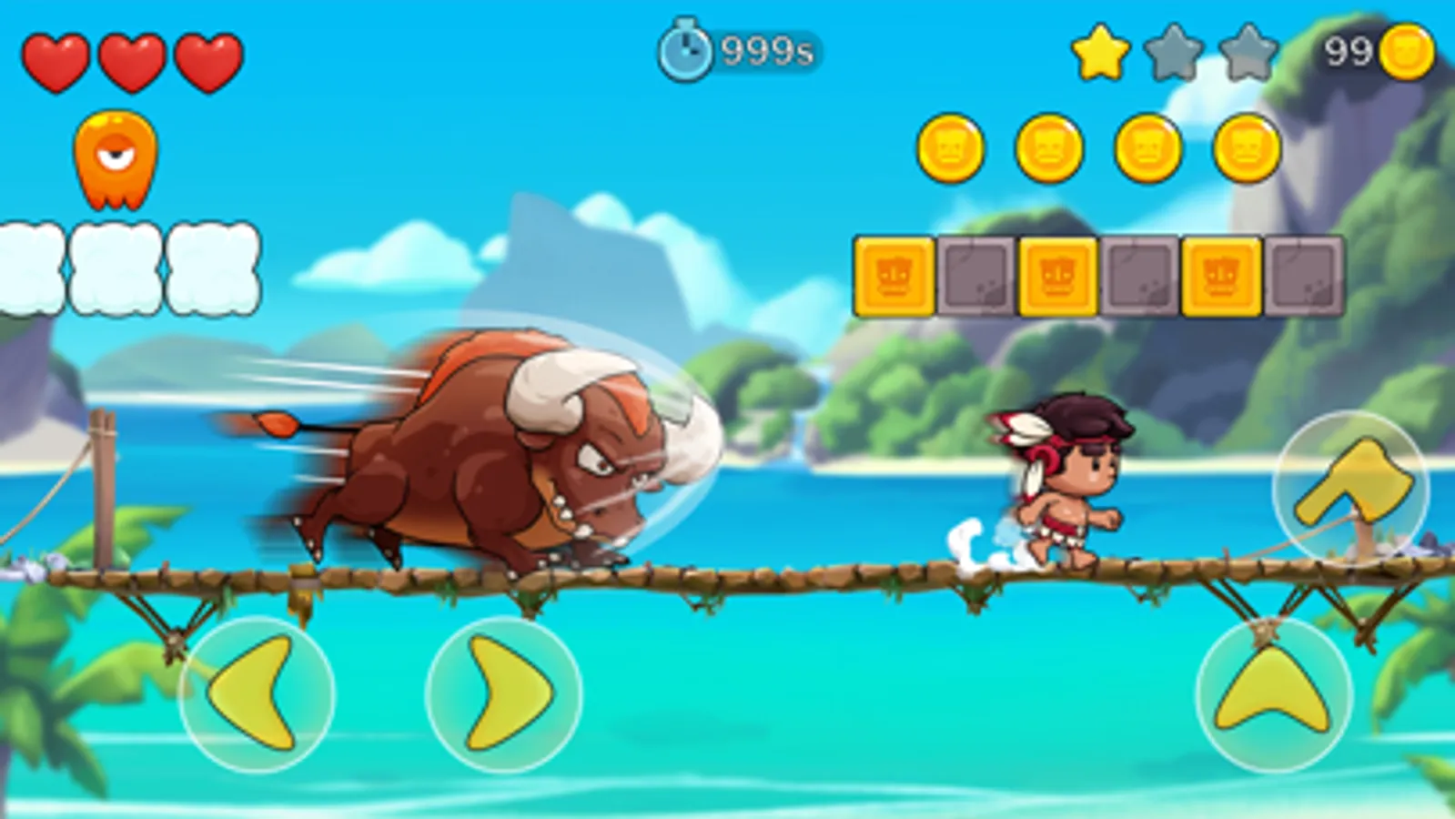 The World of Tribe Boy: Jungle Adventure contains well-designed levels, various enemies, super bosses, simple gameplay, excellent graphics, and soothing music and sounds.