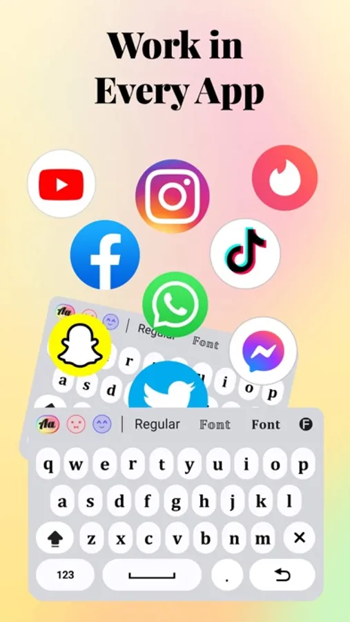 Fonts Keyboard works well with all social media apps, Instagram, TikTok, Snapchat, Facebook, iMessage, Snapchat, WhatsApp, etc. You can use Fonts Keyboard for: