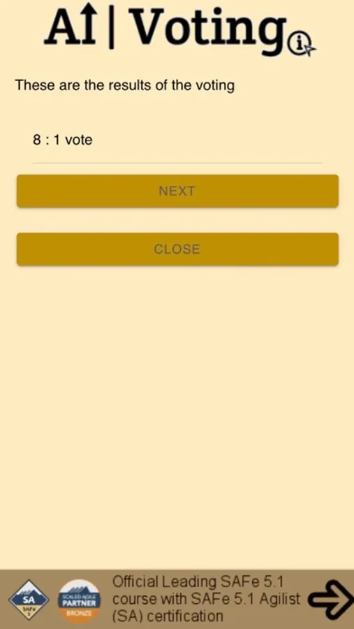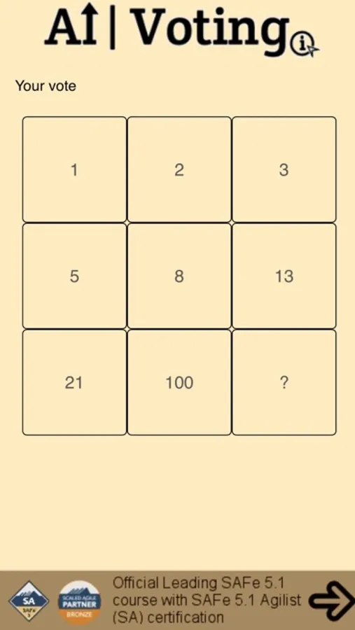 With this app you will be able to solve the typical issues of collecting the different votes during a session within an agile team, during the Confidence Vote of a PI Planning of SAFe or for your personal purposes.