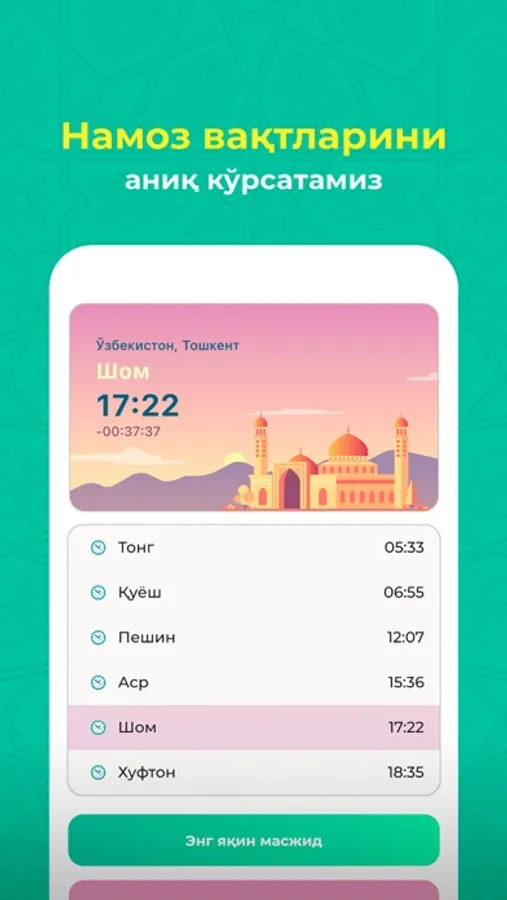 Намоз ўқишни аниқ вақтини билиб олaинг