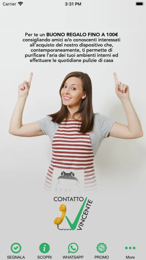 "Per ogni cliente che ci segnalerai, amici e/o conoscenti interessati all’acquisto del nostro dispositivo che contemporaneamente, ti permette di purificare l’aria dei tuoi ambienti interni ed effettuare le quotidiane pulizie di casa, riceverai subito un buono Regalo fino a €200,00" Grazie alla nostra applicazione gratuita potrai guadagnare semplicemente segnalandoci amici e conoscenti che vogliono acquistare il nostro dispositivo Hyla, purificatore d’aria, validato scientificamente. Tramite la nostra APP potrai tenere traccia delle segnalazioni, verrai aggiornato sul loro andamento fino a quando riceverai la notifica che puoi ritirare il tuo compenso. L'App è completamente gratuita e potrai condividerla con altre persone se la reputi valida. Siamo veramente entusiasti di vederti nella nostra rete di segnalatori per lavorare e guadagnare assieme.