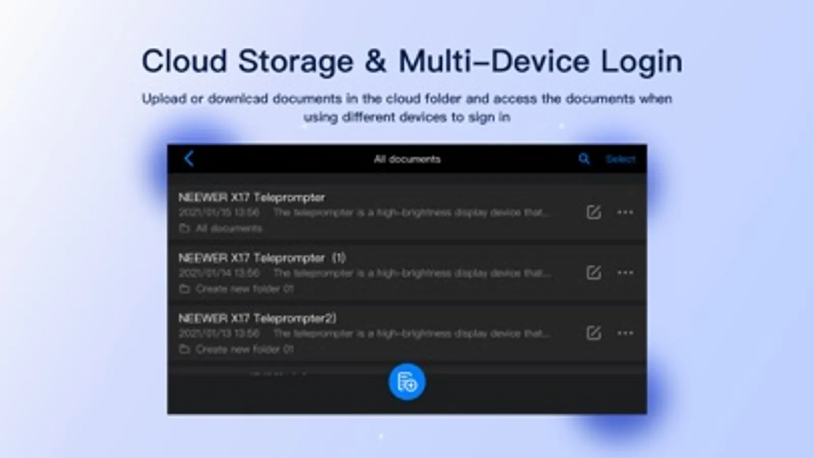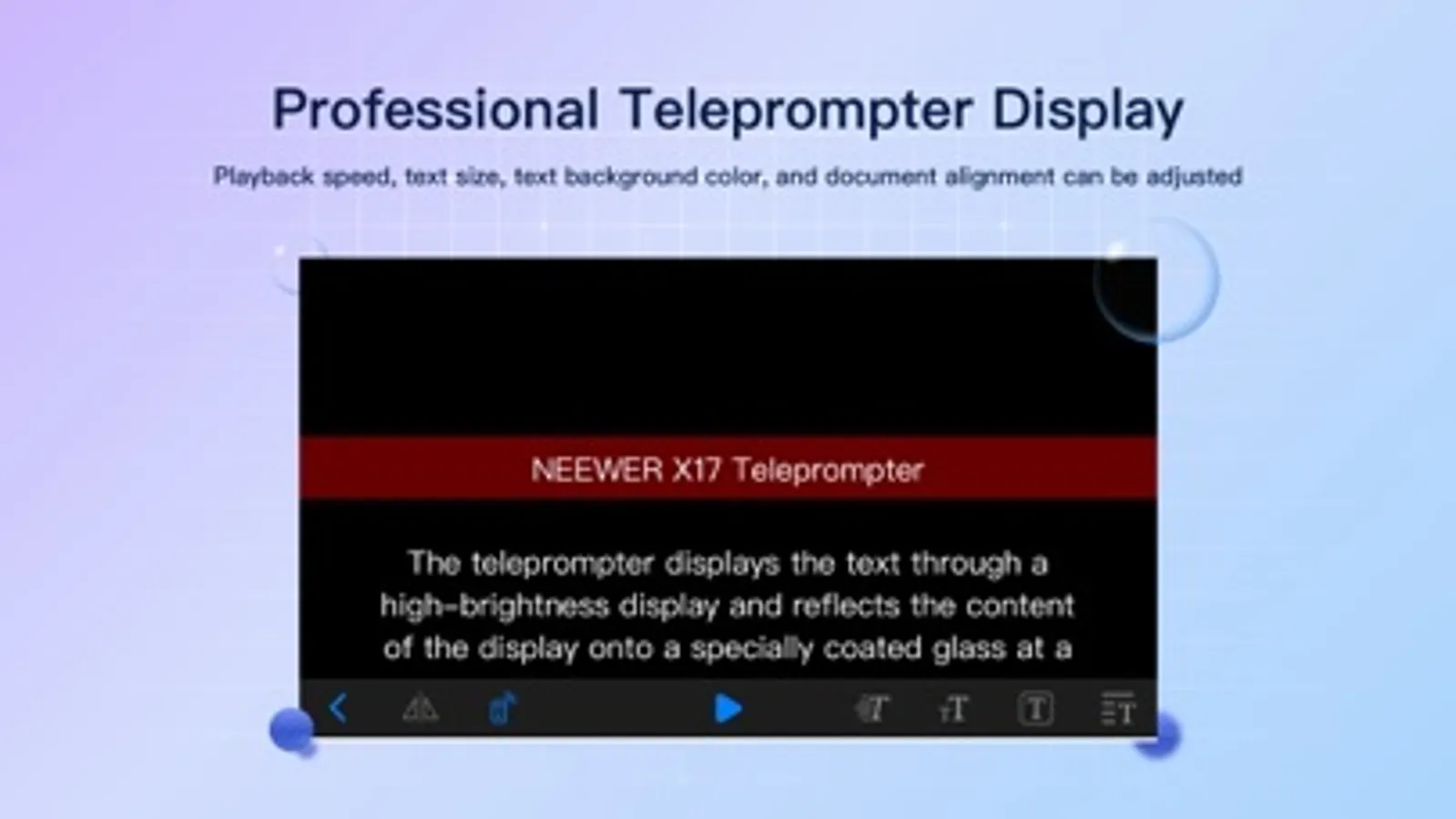 NEEWER Teleprompter is a must-have for content creators to easily manage their scripts for video recording, speech delivery, and more. Simply upload your script to the teleprompter app, and set it to play on the screen (supports playing script in mini view, or on prompt board), then you can read your script verbatim when filming or delivering a speech.nt.