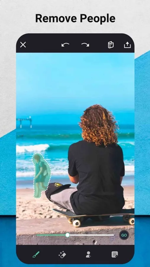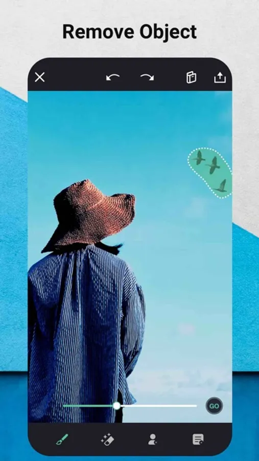 Remove objects - One of the photo editor which allows you to easily remove unwanted contents or objects from your photos using just the tip of your finger. Remove unwanted people. Erase unwanted sticker or text, erase caption.