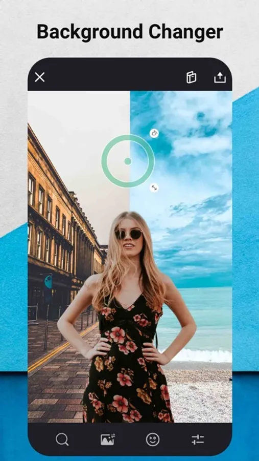 • Replace background - Cutout image automatically with AI auto selection tool and paste it on another image or backgrounds. Select any background that you want from gallery and change photo background.