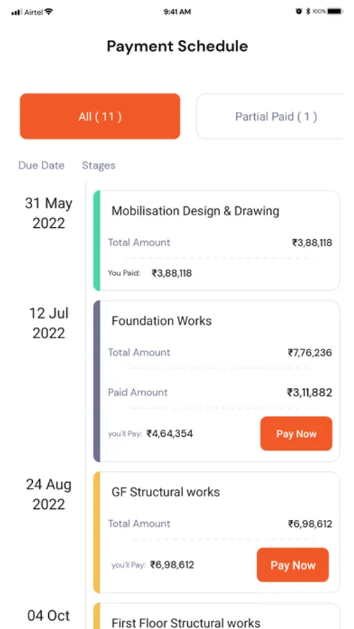1. Quick Project Overview: Track house construction progress in realtime, view project documents, inspection reports, work & payment schedule and more on a single screen.