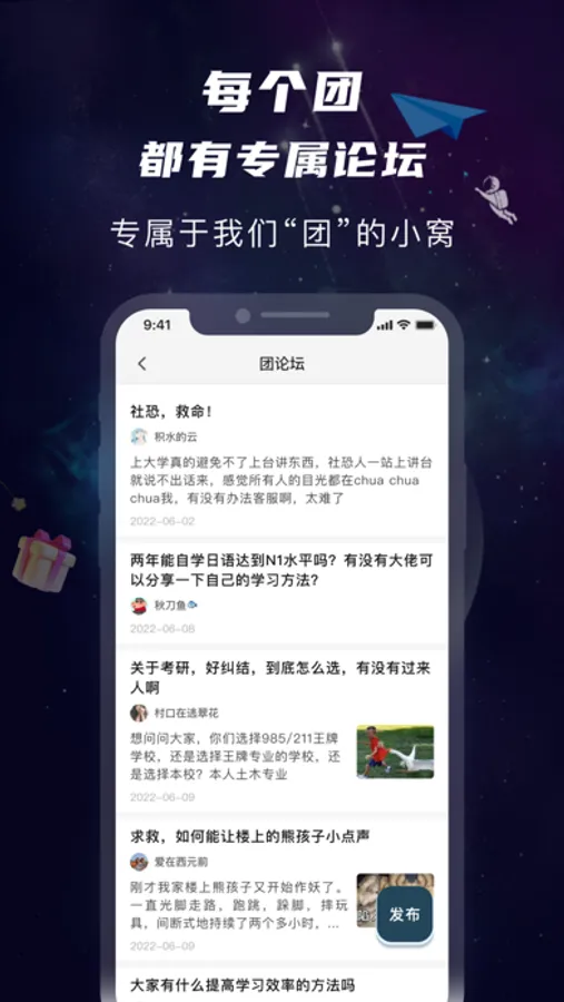【团论坛】每个团,都有专属论坛,大家与你志趣相投,快来分享知识,讨论问题,畅所欲言吧
