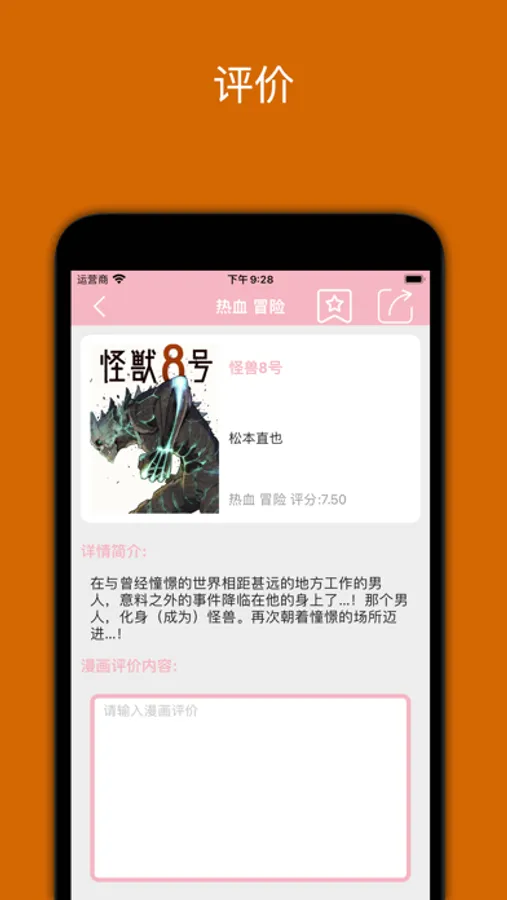 漫画记录评价,实时更新漫画,让你能够记录漫画的阅读、评价,是您的漫画记录小助手.