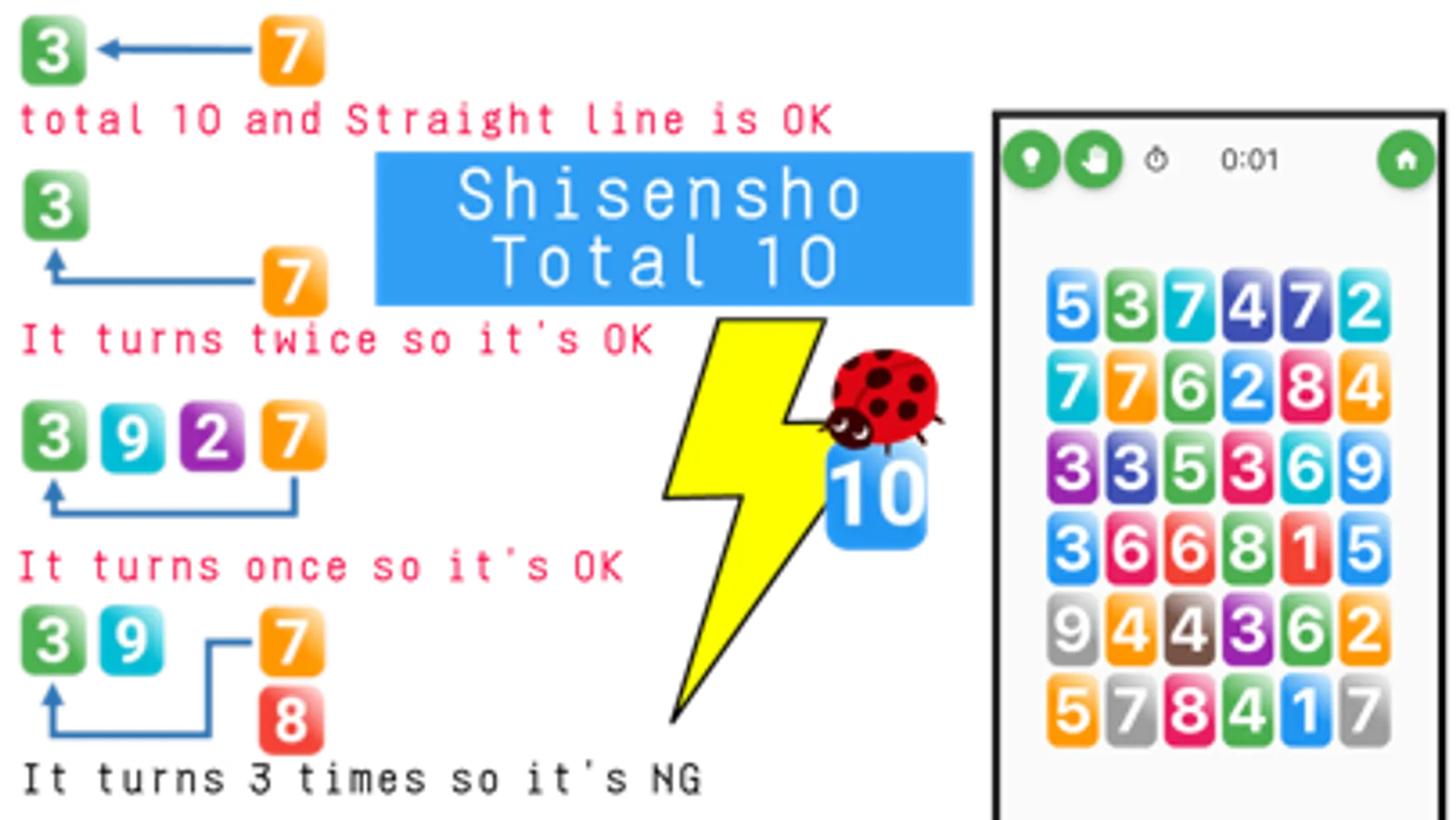 Shisensho is a puzzle game to take the numbers irregularly lined up.
