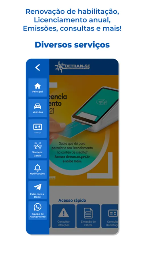 O novo aplicativo do DETRAN-SE foi criado para permitir ao usuário acesso rápido a uma série de serviços, sem que seja necessário sair de casa e enfrentar filas.