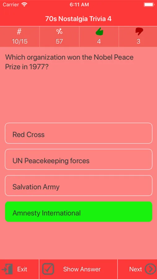 - Show correct answer on quiz screen