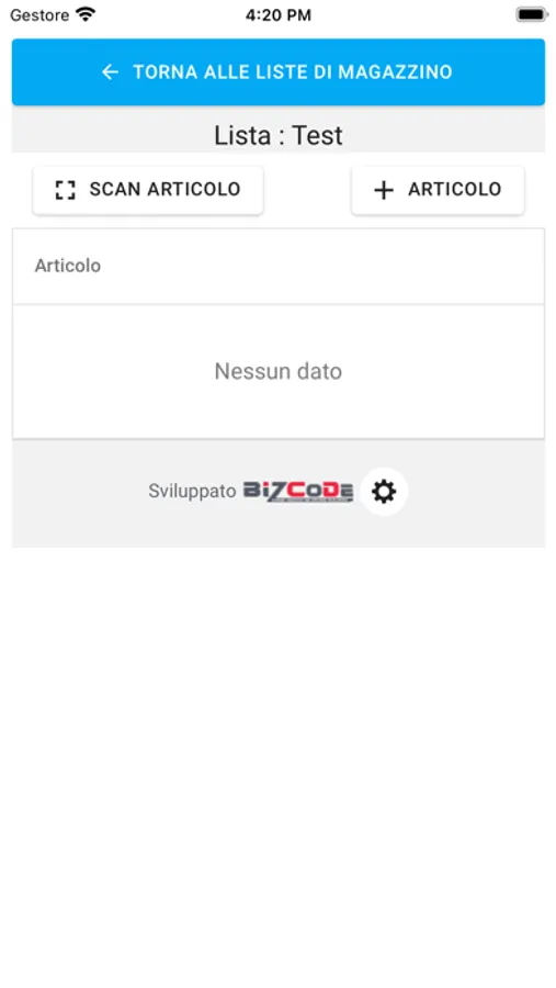 Liste Articoli Bizcode Screenshots