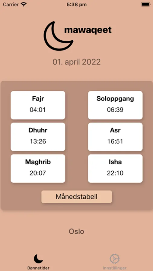 Mawaqeet appen gir deg presise bønnetider for ditt område. Det finnes over 60 steder men flere vil komme.