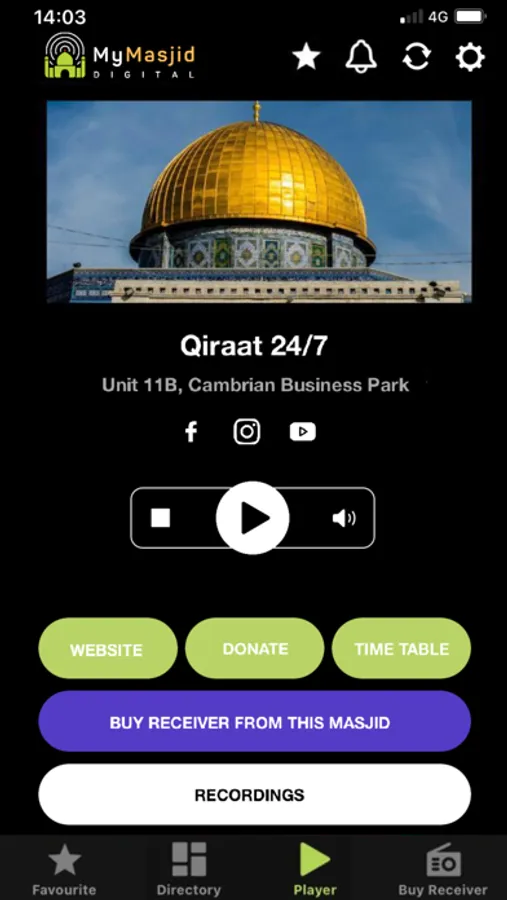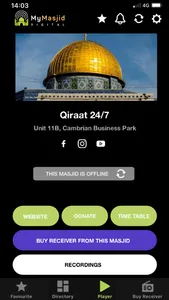 *Currently, the MyMasjid Digital app will only allow you to listen to masjids listed in our online directory. If you wish to listen to other masjids, this can only be done using our MyMasjid Digital WiFi Receiver MMR-01. Visit our website for more details.