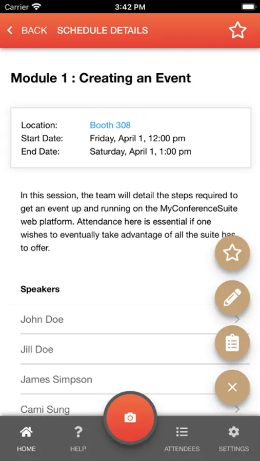 The app has an agenda, floor layout, speaker details, and other event relevant information.