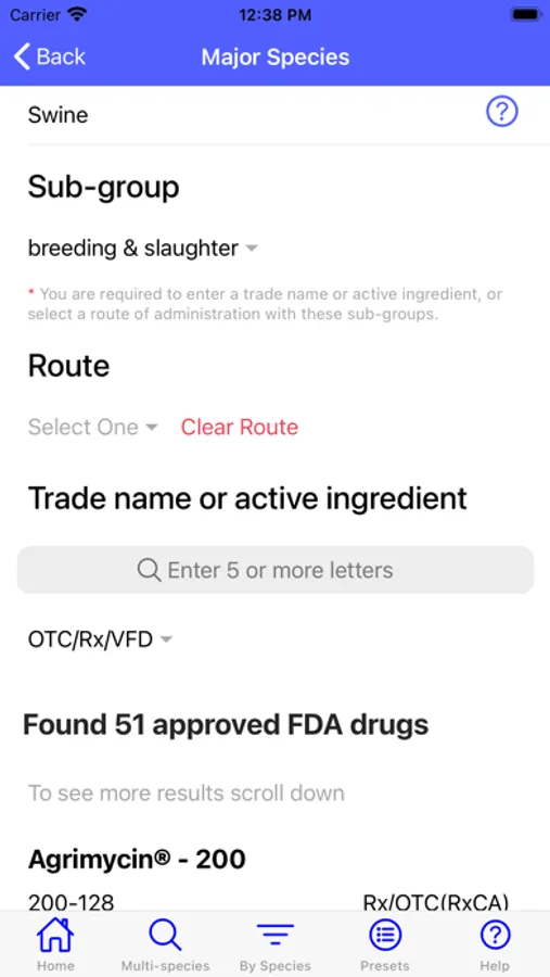 The Veterinarian's Guide to Residue Avoidance Management (VetGRAM) is a comprehensive, searchable, and up-to-date information resource for drugs approved in food-producing animal species. VetGRAM users can create customized searches to obtain approved drug uses, government restrictions, required withdrawal times and tolerances for any drug approved by the FDA for use in food-producing animal species. A withdrawal date calculator provides the date on which animals or their products can be used for food after the FDA-mandated waiting period following administration of a drug at the approved label dose(s) in an approved animal species.