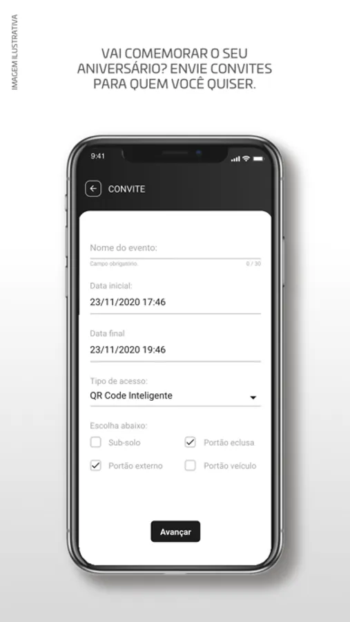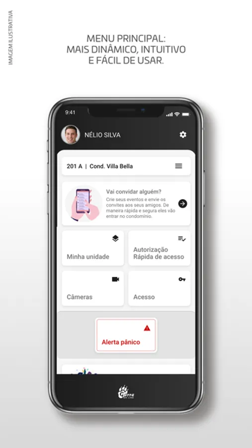 Possibilidade de o morador criar um evento e enviar convites para todos os seus convidados. Sempre que um dos seus convidado entrar ao condomínio, ele recebe uma notificação push no app.
