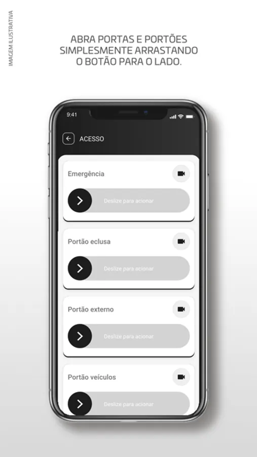 Possibilidade de acionamento dos portões com agilidade e segurança.