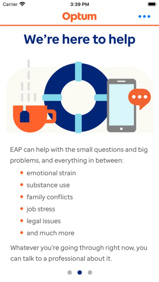 Life happens 24/7. The Optum Assist app is available anytime, anywhere to help you navigate the chaos and find the answers and support you can trust. Use it to learn about your EAP services, find providers and explore our library on topics such as anxiety, caregiving, parenting, relationships and depression. The help you need is here.