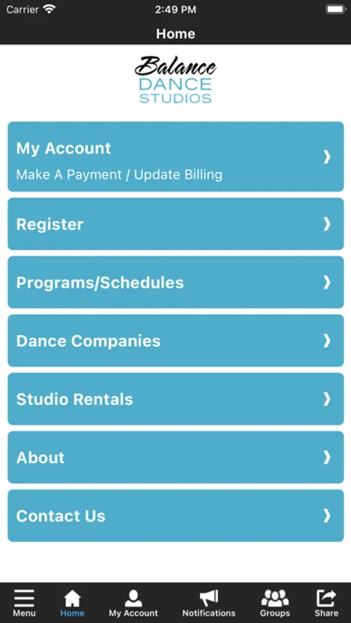 The Balance Dance Studios app allows you to manage your account with ease, register for classes, workshops, camps, and special events. You'll also receive important notifications about class changes, closings, registration openings, special announcements, and upcoming events.