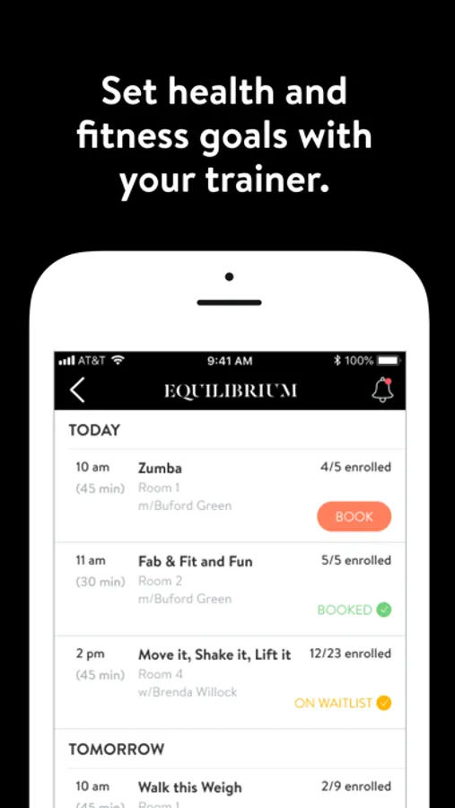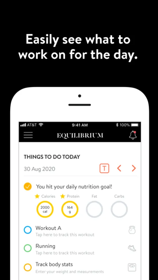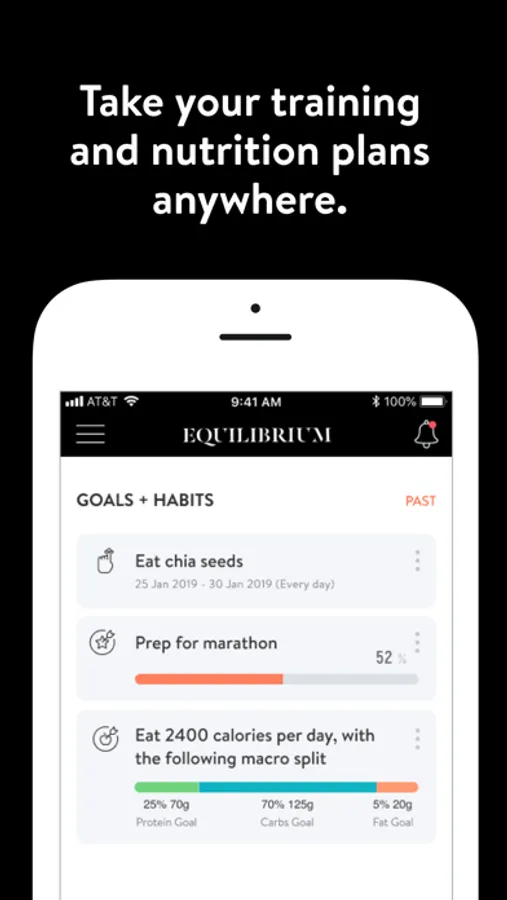 With the Equilibrium+ App, you can start tracking your workouts and meals, measuring results, and achieving your fitness goals, all with the help of your personal trainer.