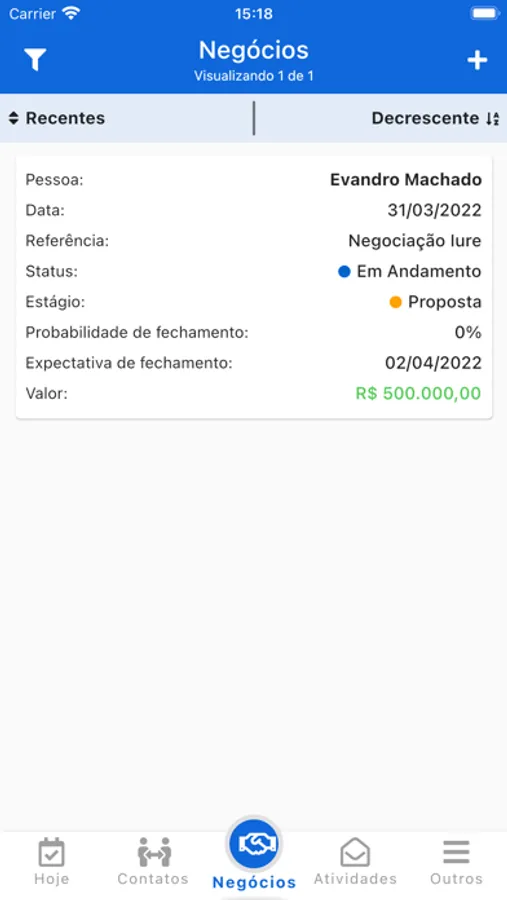Financeiro - Único CRM do mercado com financeiro integrado.