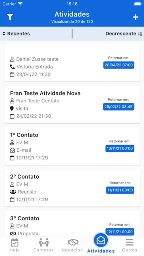 Dashboard - Comece o seu dia com uma visão geral de suas atividades agendadas e planeje seu dia de trabalho.