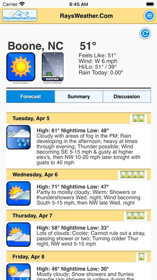 RaysWeather.Com has been the go-to weather source for Western North Carolina and Southwest Virginia for 22 years. The re-release of the App puts Ray's Forecast, over 60 weather stations, 30 webcams, and 10 custom radar loops in your pocket. And don't forget the Golf-o-Meter, Snowman-O-Mometer, and Photo of the Day. It's all there.