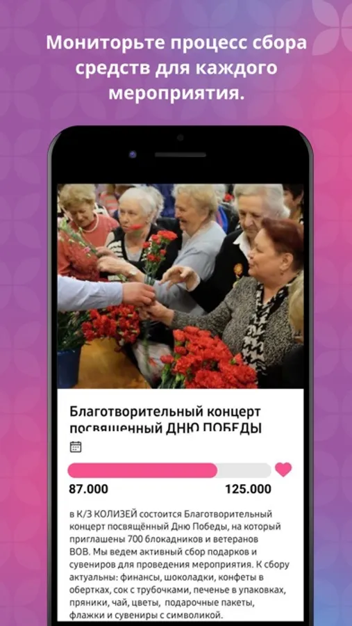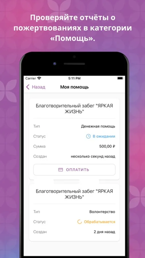 Скачивайте приложение и отправляйте пожертвования в один клик — принесите больше добра в этот мир.